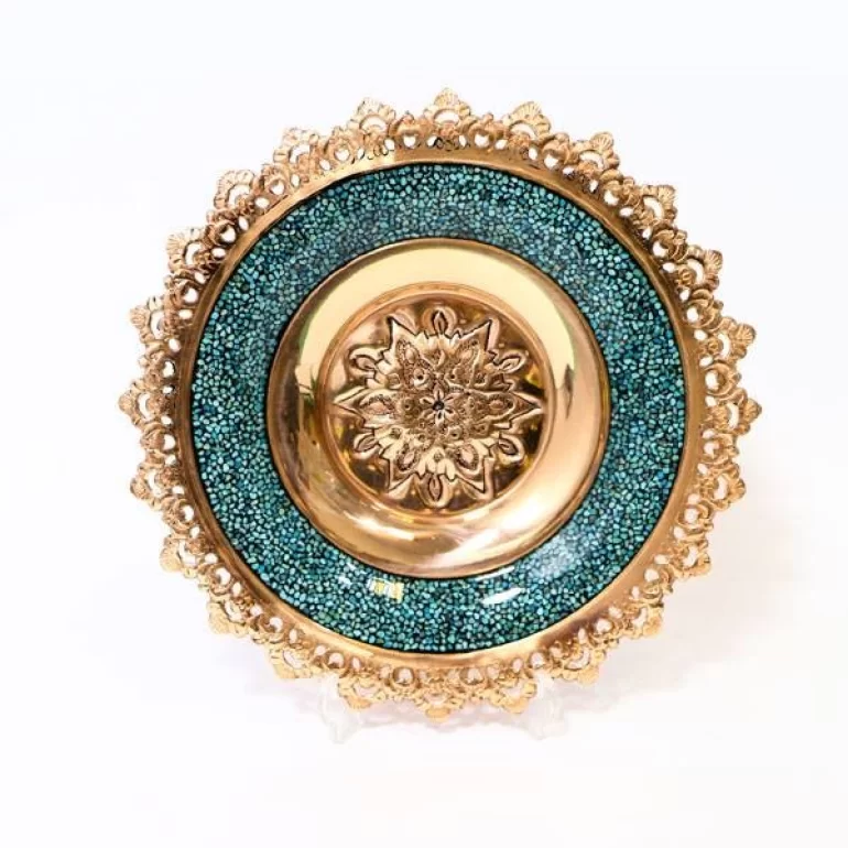 فیروزه از جمله جواهراتی است که همیشه مورد نظر و توجه علاقمندان به زیورآلات بوده است.این سنگ گران بها که که در واقع فسفات آبدار طبیعی آلومینیم می باشد که در دستگاهی کج وجهی متبلور شده و پس از آن به عنوان جواهر استفاده شده و داری طیف رنگی از آبی روشن تا سبز می باشد.هنر فیروزه کوبی از جمله هنرهای صنایع دستی بوده که زیبایی و گیرایی خاصی همراه خود دارد.مصنوعات مس و فیروزه، شامل مصنوعاتی است که از جنس مس ساخته شده و مزین به هنر فیروزه کوبی می باشند.بشقاب شبکه بری فیروزه کوب، از جمله آثار زیبا و ارزشمنده این شاخه می باشد.