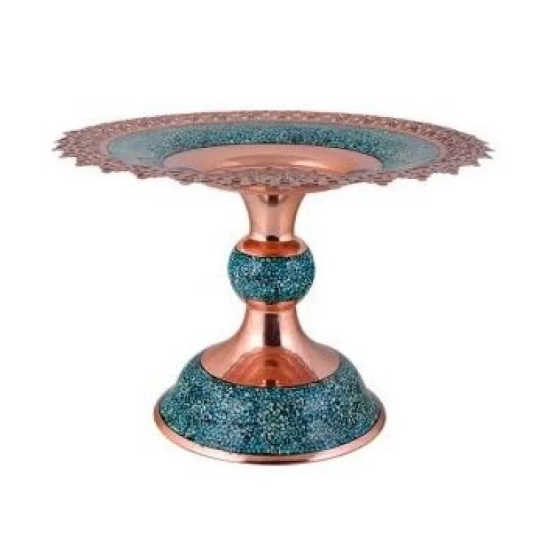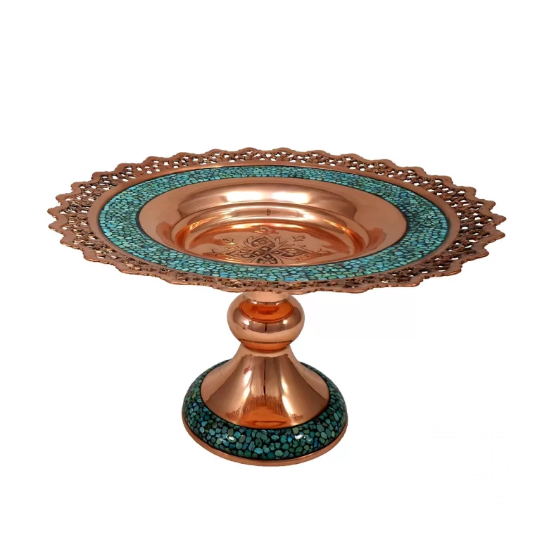 هنر فیروزه کوبی از جمله هنرهای صنایع دستی بوده که زیبایی و گیرایی خاصی همراه خود دارد.مصنوعات مس و فیروزه، شامل مصنوعاتی است که از جنس مس ساخته شده و مزین به هنر فیروزه کوبی می باشند.شیرینی خوری فیروزه کوب، از جمله آثار زیبا و ارزشمنده این شاخه می باشد. ابعاد این محصول 10×10×16 سانتی متر می باشد.