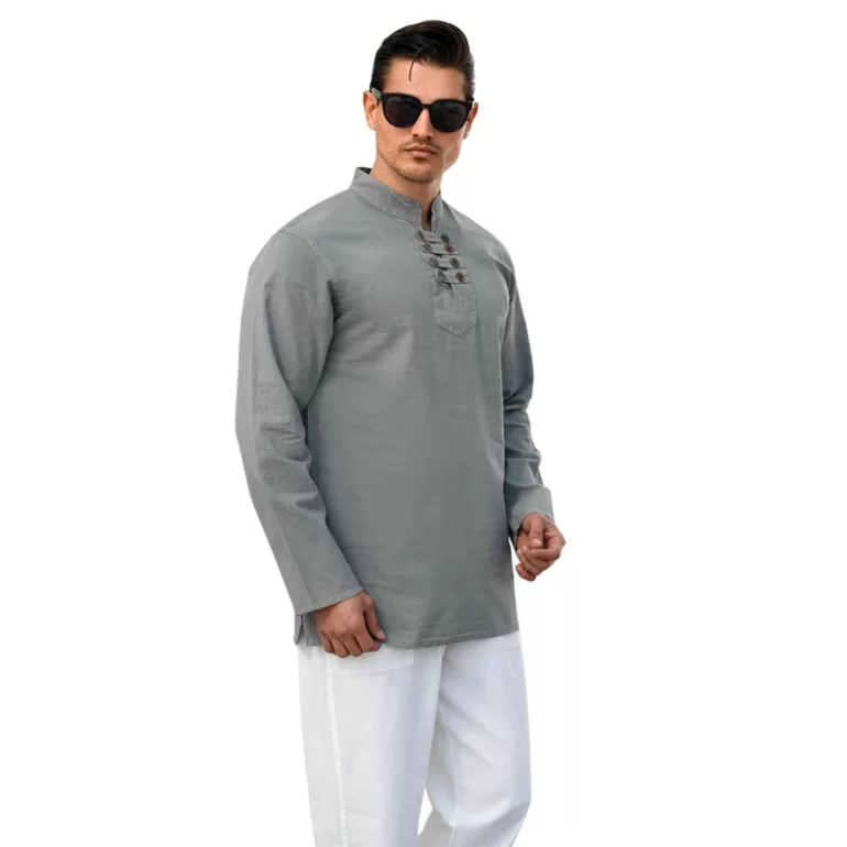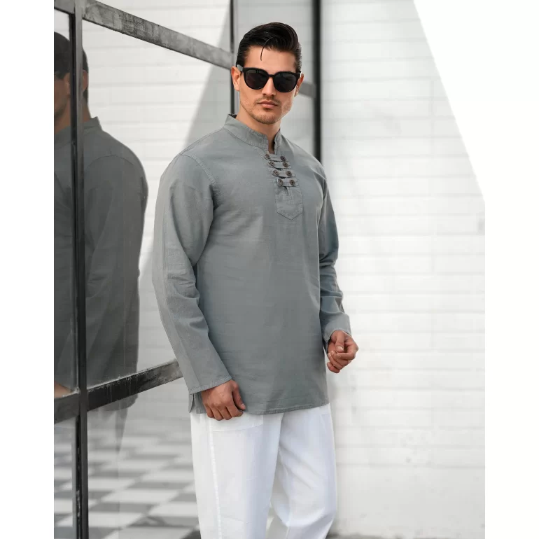 پیراهن الیاف طبیعی مردانه مدل هشت دکمه