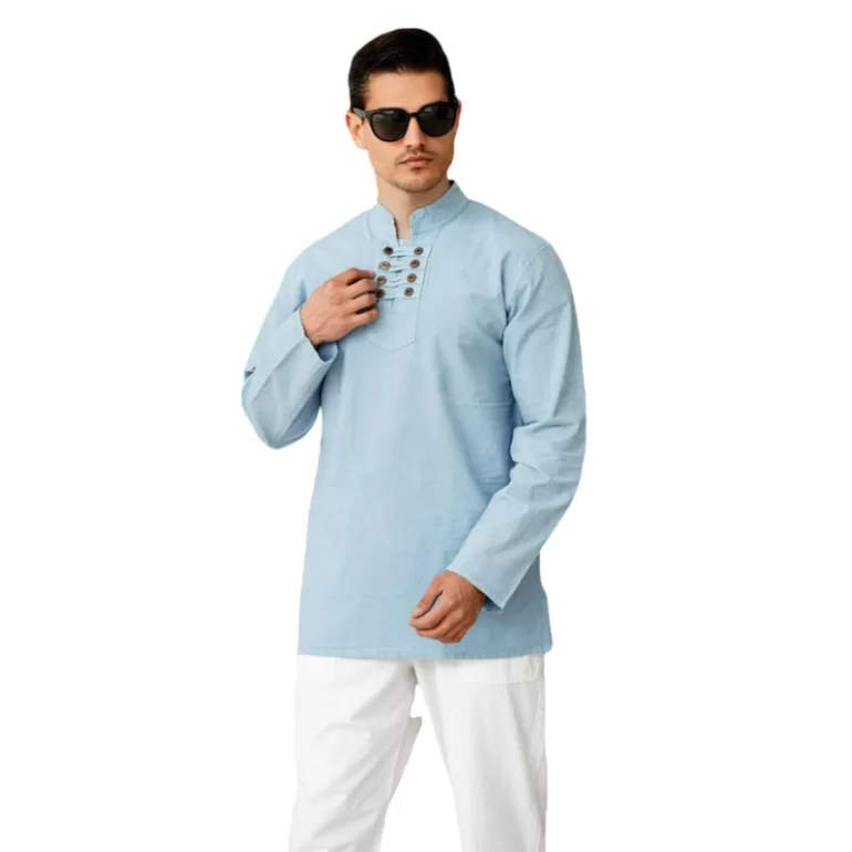 پیراهن الیاف طبیعی مردانه مدل هشت دکمه