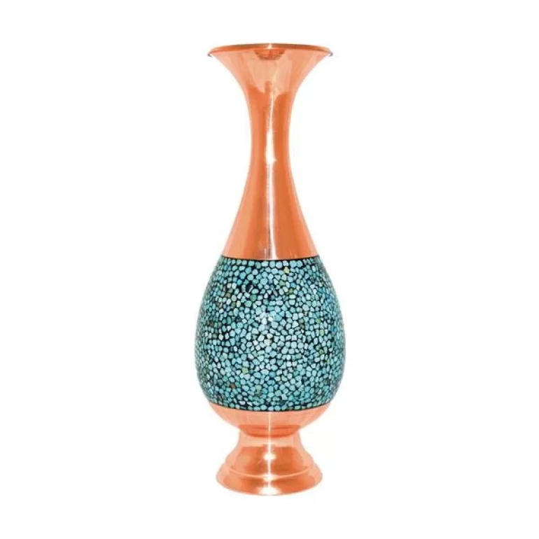 گلدان زیبای صراحی که بدنه آن از جنس مس بوده و هنر ظریف فیروزه کوبی روی آن اجرا شده است از نفیس ترین صنایع دستی اصفهان می باشد. ابعاد این گلدان 9×25 سانتی متر است.