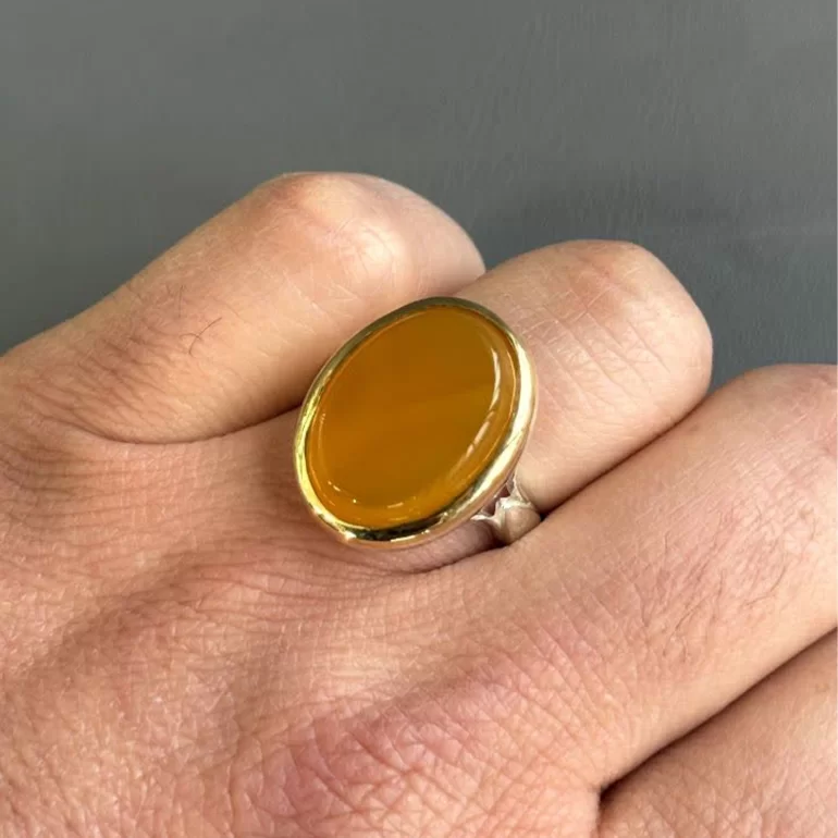 انگشتر نقره مردانه مدل عقیق زرد شرف الشمس کد 20