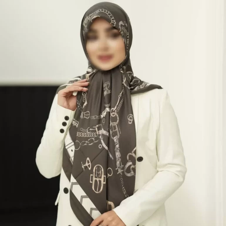 روسری ابریشم توییل قهوه ای دور دوخت کد 632