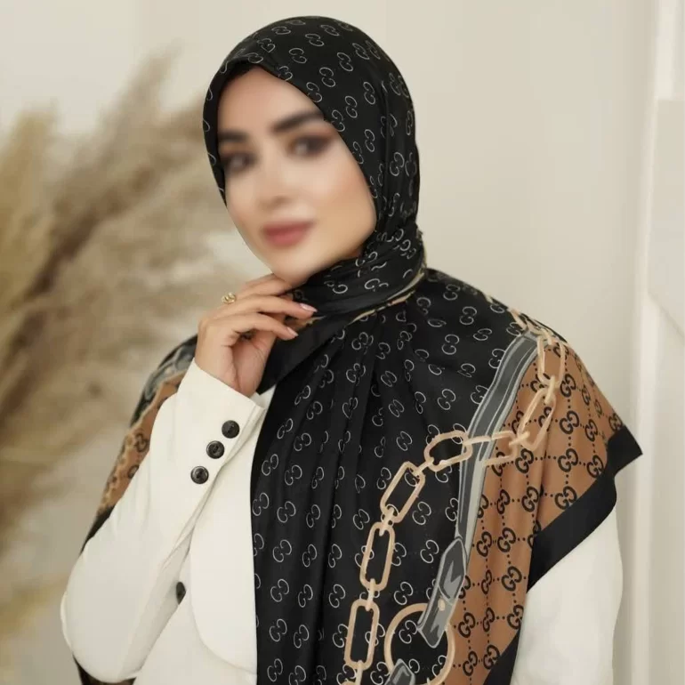 روسری ابریشم توییل مشکی دور دوخت کد 532