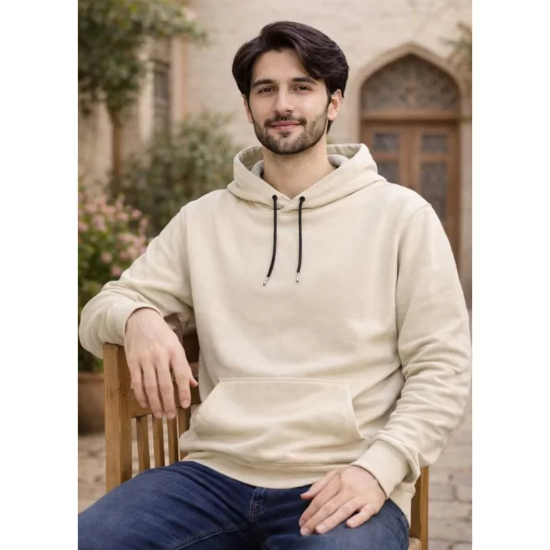 هودی مردانه سه‌ نخ کلاسیک کرم
