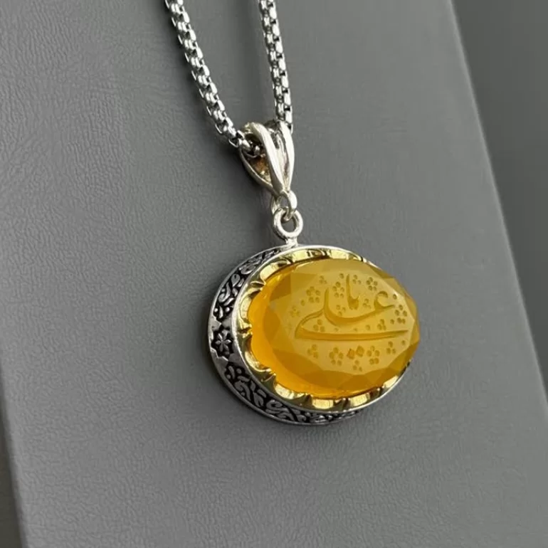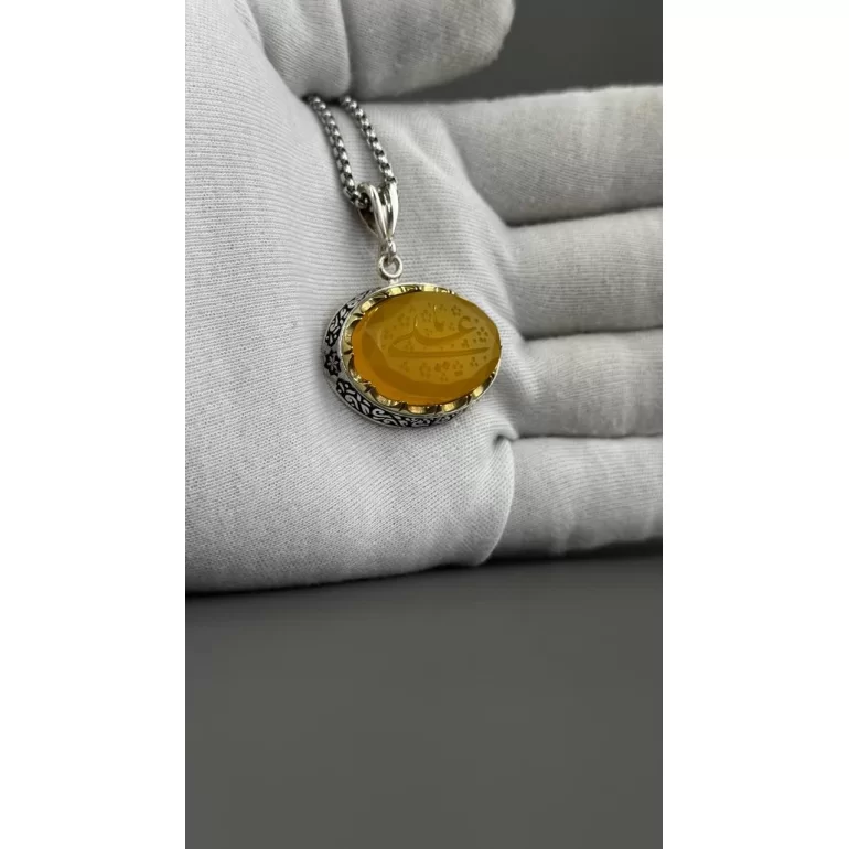 مدال نقره زنانه مدل عقیق زرد شرف الشمس کد 76