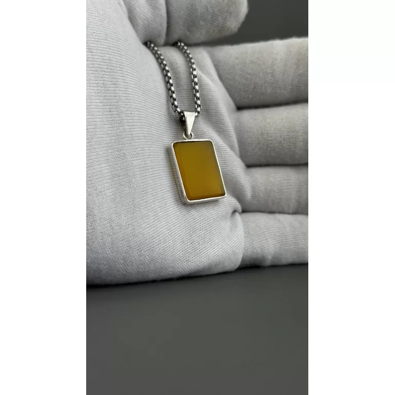 مدال نقره زنانه مدل عقیق زرد شرف الشمس کد 78
