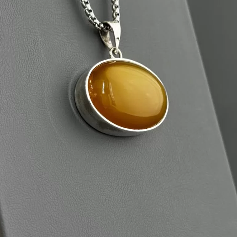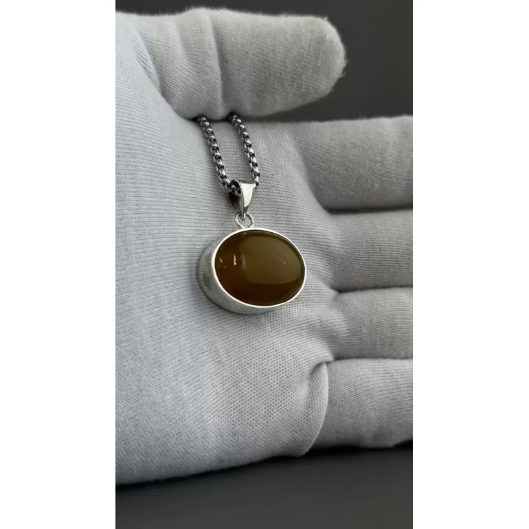 مدال نقره زنانه مدل عقیق زرد شرف الشمس پشت بسته حرز امام جواد کد 85