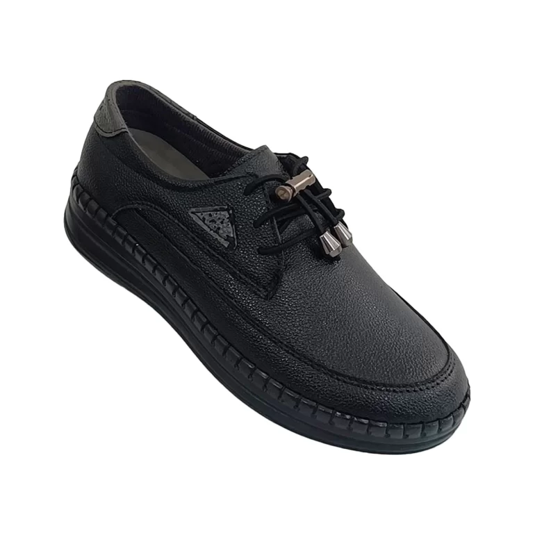 کفش مردانه طبی چرم طرح لئون بند دار مشکی