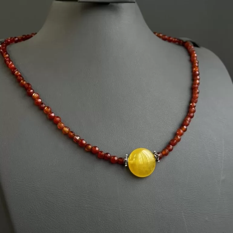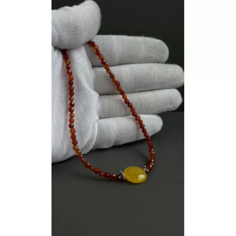 گردنبند سنگی زنانه مدل عقیق زرد شرف الشمس کد 192
