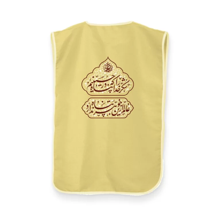 این کاور ویژه خادمین و انتظامات هیئت ها و از پارچه کج راه تولید شده است. عبارت شکر خدا را که در پناه حسینیم به روش چاپ سیلک روی این محصول درج شده است که دارای فرم خاص و جذابی می باشد. دور تا دور این روپوش 75×50 سانتی متری دوردوزی شده است که طول عمر و دوام آن را بالا می برد.