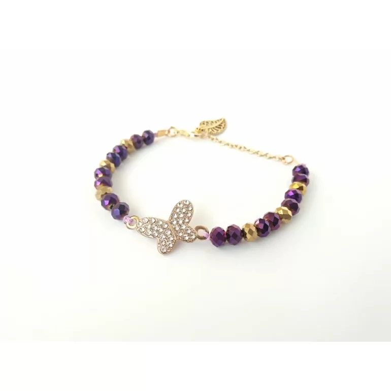 دستبند دخترانه پروانه ای نگینی طرح فرانک