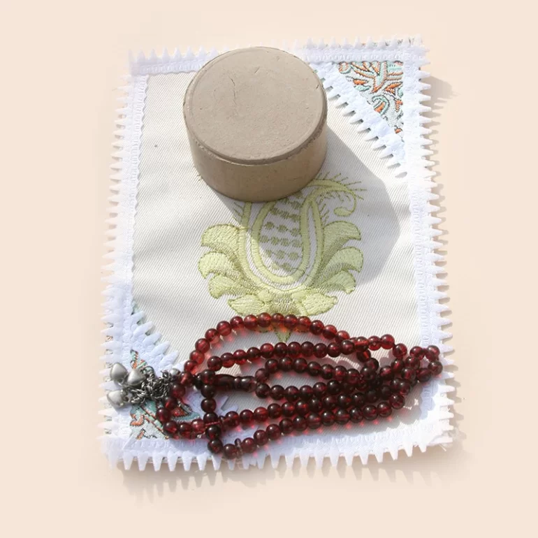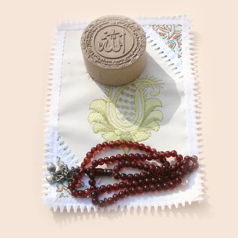 مهر تربت سلفونی با اذکار مختلف یا بدون ذکر، مناسب برای استفاده در نمازخانه های مدارس، مساجد، ادارات (تُربت در اصطلاح شیعه خاک و غباری است که از اطراف قبر امام حسین علیه السلام (تا محدوده 5 فرسخی مرقد حضرت سید الشهداء علیه السلام))