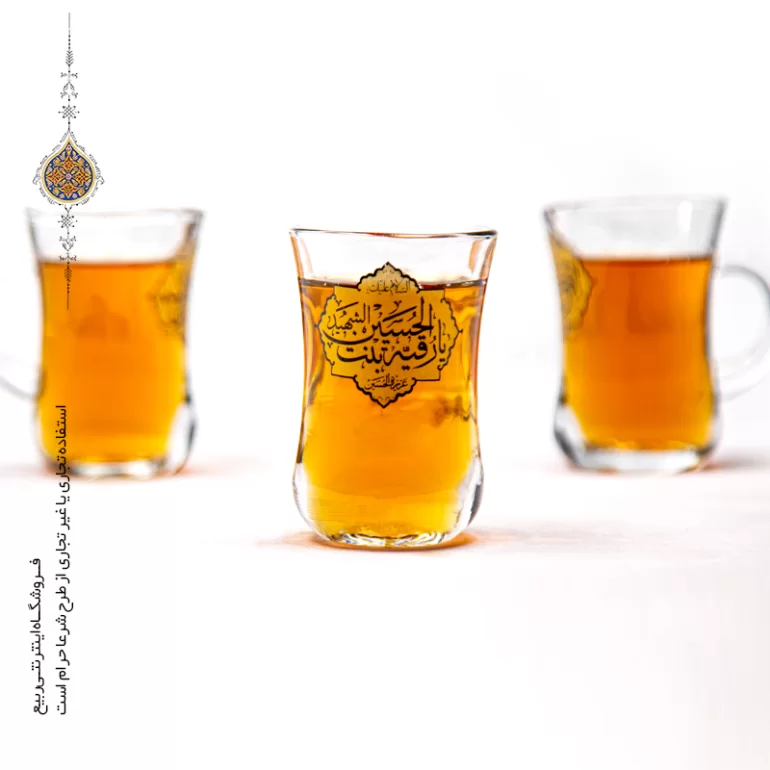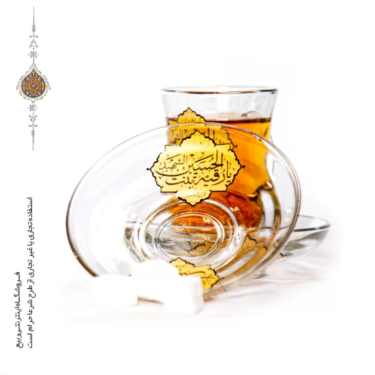 ست استکان کمرباریک دسته دار و نعلبکی طرح رقیه بنت الحسین الشهید بسته 6 عددی