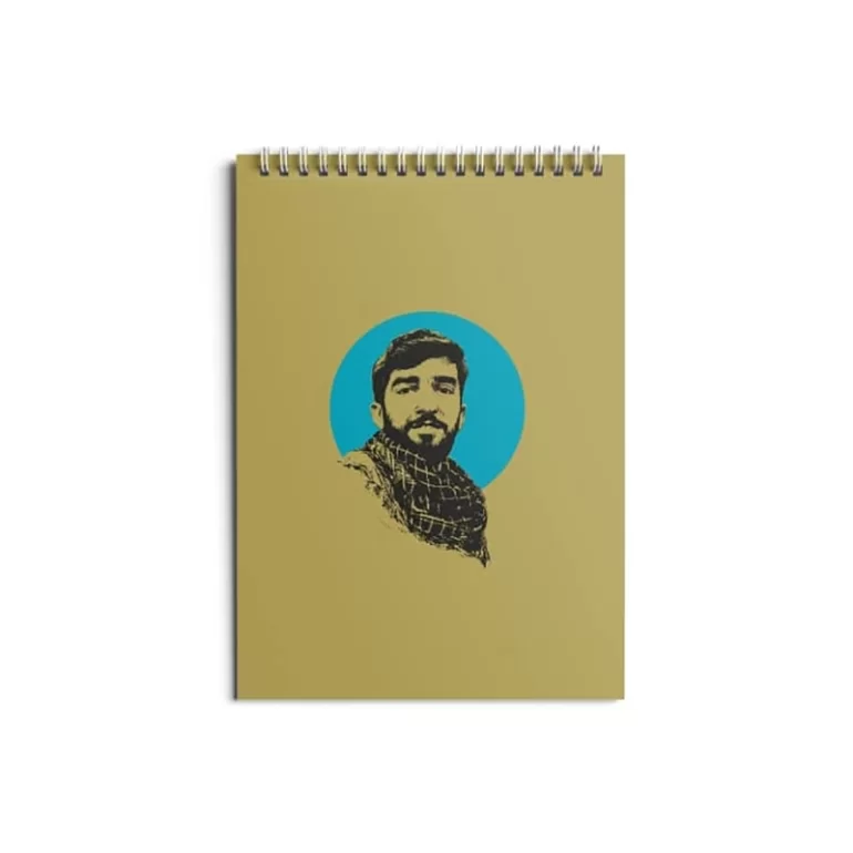 دفترچه 80 برگ طرح شهید محسن حججی. جنس جلد این دفترچه کرافت سیصد گرم است و با طرحی از تصویر شهید حججی که توسط آقای محمد صادق طراحی شده مزین شده است. برگه های این دفترچه از جنس کاغذ 80 گرم اندونزی است.