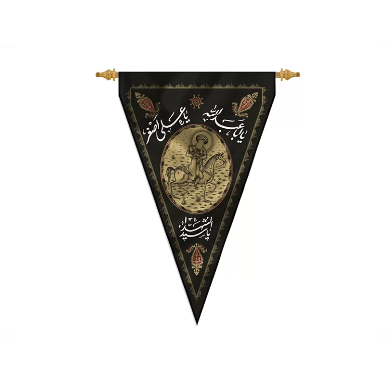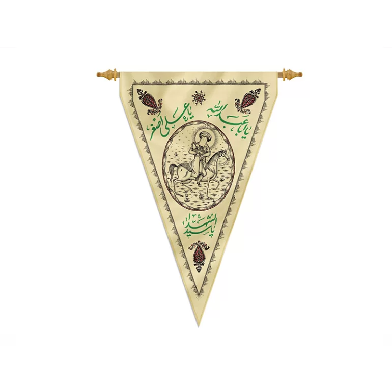 پرچم چاپ سنگی طرح یا علی اصغر پارچه کج راه