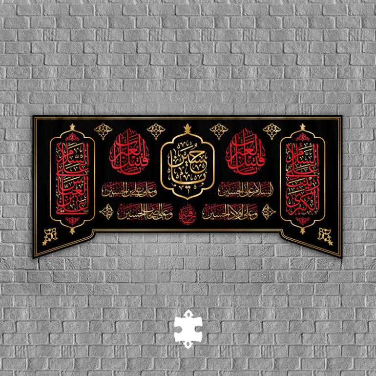 این کتیبه از جنس پارچه مخمل می باشد. چاپ صورت گرفته روی این محصول، از طریق دستگاه های تمام دیجیتال سابلیمیشن صورت گرفته است. این محصول در اثر شستوشو دچار رنگ پریدگی نمیگردد، بر اثر تا خوردن سفید نمیشود و رنگ های آن به دلیل وجود چاپ باکیفیت هیچگاه از بین نمیرود. این کتیبه دارای ابعاد مختلف است که از طریق منو قابل انتخاب است. برای تمام کتیبههای فروشگاه ربیع ریشه دوزی انجام شده است.
