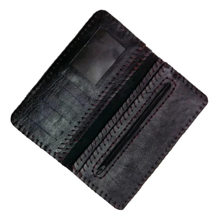 کیف پول چرم در ابعاد پالتویی دو طرفه به همراه یک قسمت پول مجزا است. همچنین دارای شش قسمت کارت است. دوخت این محصول کاملا دستی انجام شده است و از این نظر یک صنعت دستی ارزشمند است. چرم این محصول می تواند مصنوعی یا طبیعی باشد. برای انتخاب نوع چرم میتوانید از منوی زیر استفاده کنید.