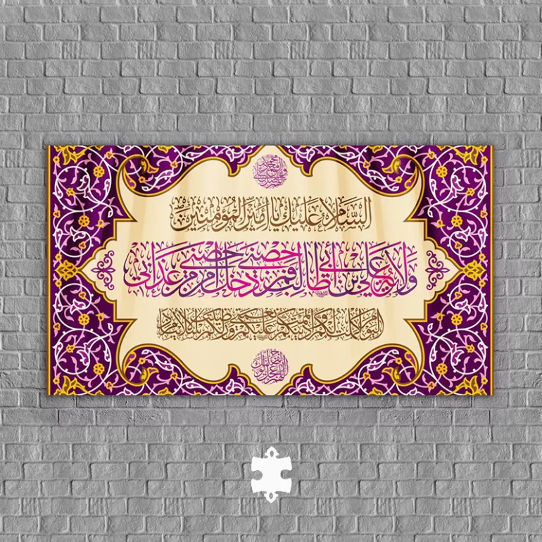 این کتیبه از جنس پارچه مخمل می باشد. چاپ صورت گرفته روی این محصول، از طریق دستگاه های تمام دیجیتال سابلیمیشن صورت گرفته است. این محصول در اثر شستوشو دچار رنگ پریدگی نمیگردد، بر اثر تا خوردن سفید نمیشود و رنگ های آن به دلیل وجود چاپ باکیفیت هیچگاه از بین نمیرود. این کتیبه دارای ابعاد مختلف است که از طریق منو قابل انتخاب است. برای تمام کتیبههای فروشگاه ربیع ریشه دوزی انجام شده است.